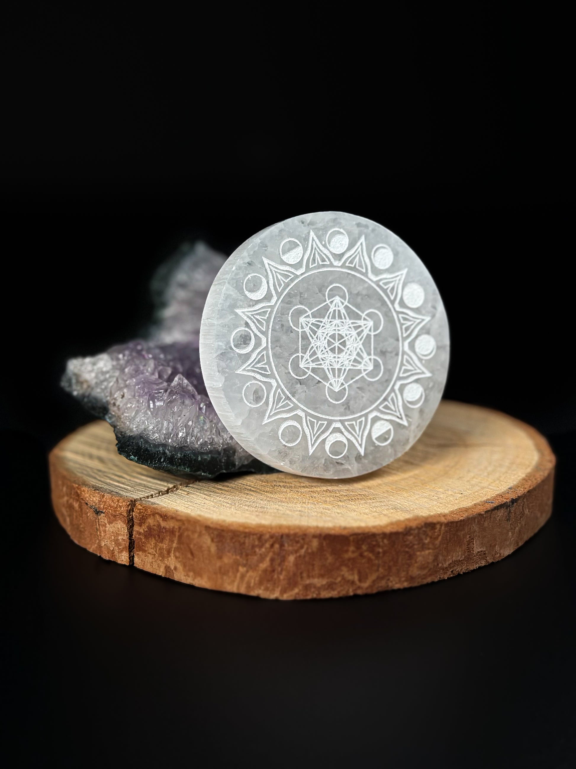 Associé à la sélénite, il devient un puissant support de purification et d’élévation énergétique, idéal pour les soins, la méditation et les espaces sacrés.